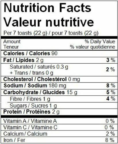 Boulangerie Grissol Melba Toast Sesame Nutrition Facts WebCalories in 4 toasts (21 g.) - 80 cal. Relatively rich in vitamins and minerals (4%/cal) - a good source of Iron.